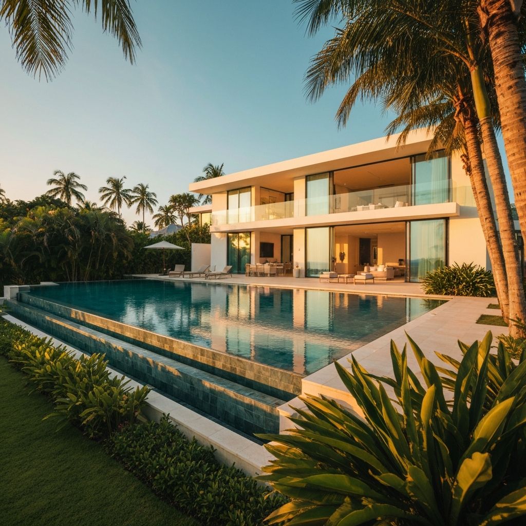 Sleek modern villa with panoramic ocean views and direct beach access.